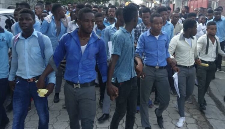 Ils étaient plusieurs centaines ce matin à gagner les rues de la cité de Faustin Soulouque pour protester contre les textes d’examens proposés par le MENFP qu’ils estiment inappropriés au programme vu durant ce laps de temps passé en salle de classe.