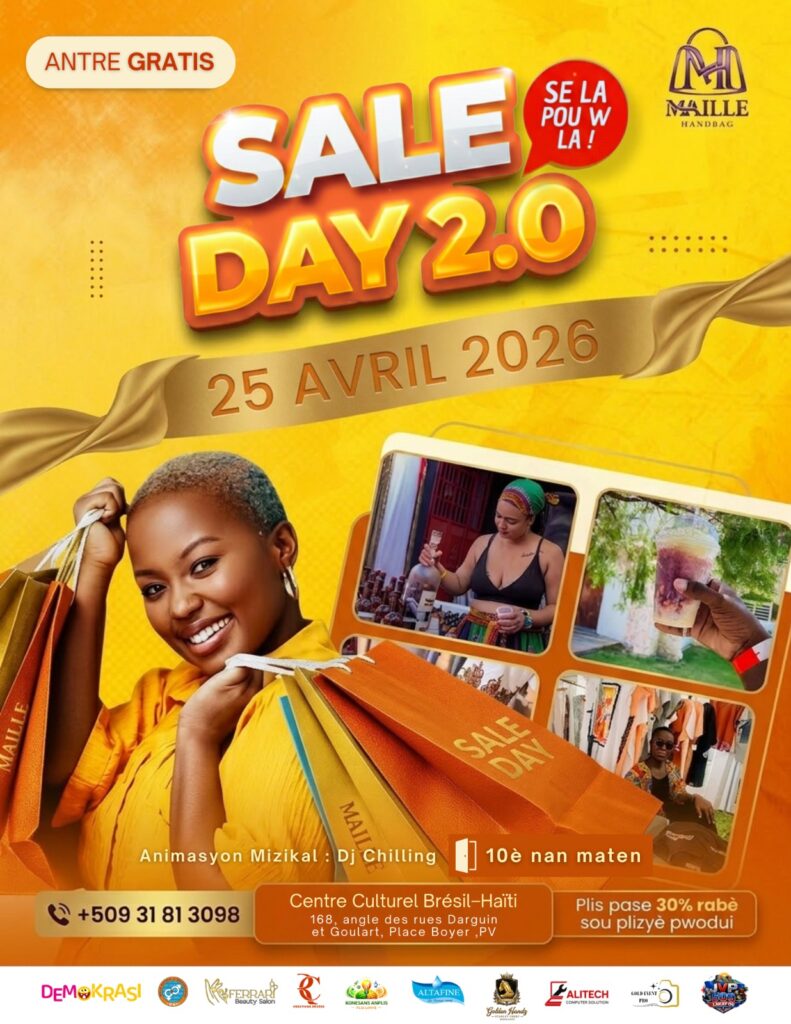 Au-delà de l’aspect commercial, Sale Day 2.0 promet une ambiance festive et conviviale. Les visiteurs pourront profiter d’une expérience chaleureuse, marquée par des animations musicales qui viendront rythmer la journée. La gastronomie haïtienne sera également à l’honneur, avec une sélection de plats traditionnels qui mettront en valeur la richesse culinaire du pays.